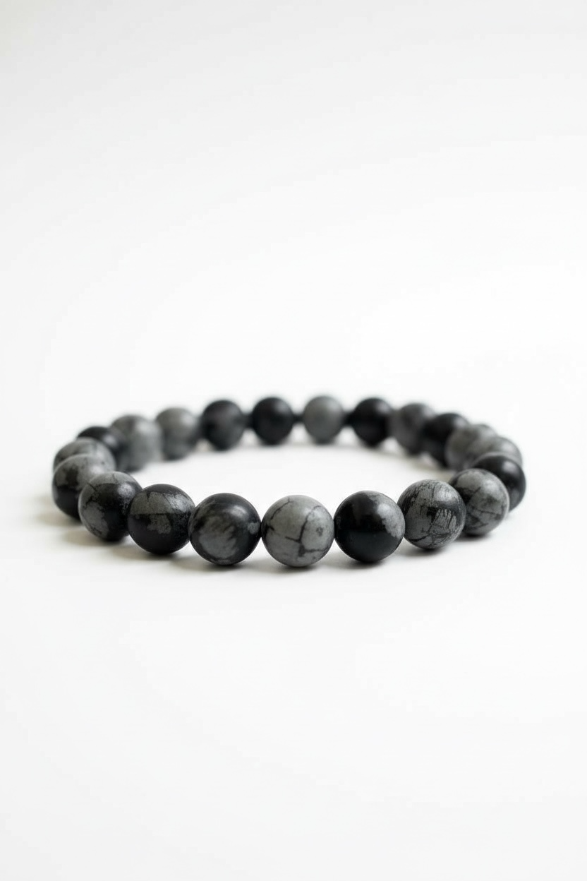 Carefully crafted and hand-strung, these bracelets feature grade A snowflake obsidian gemstones. Each bracelet is custom made to the size of your choice.